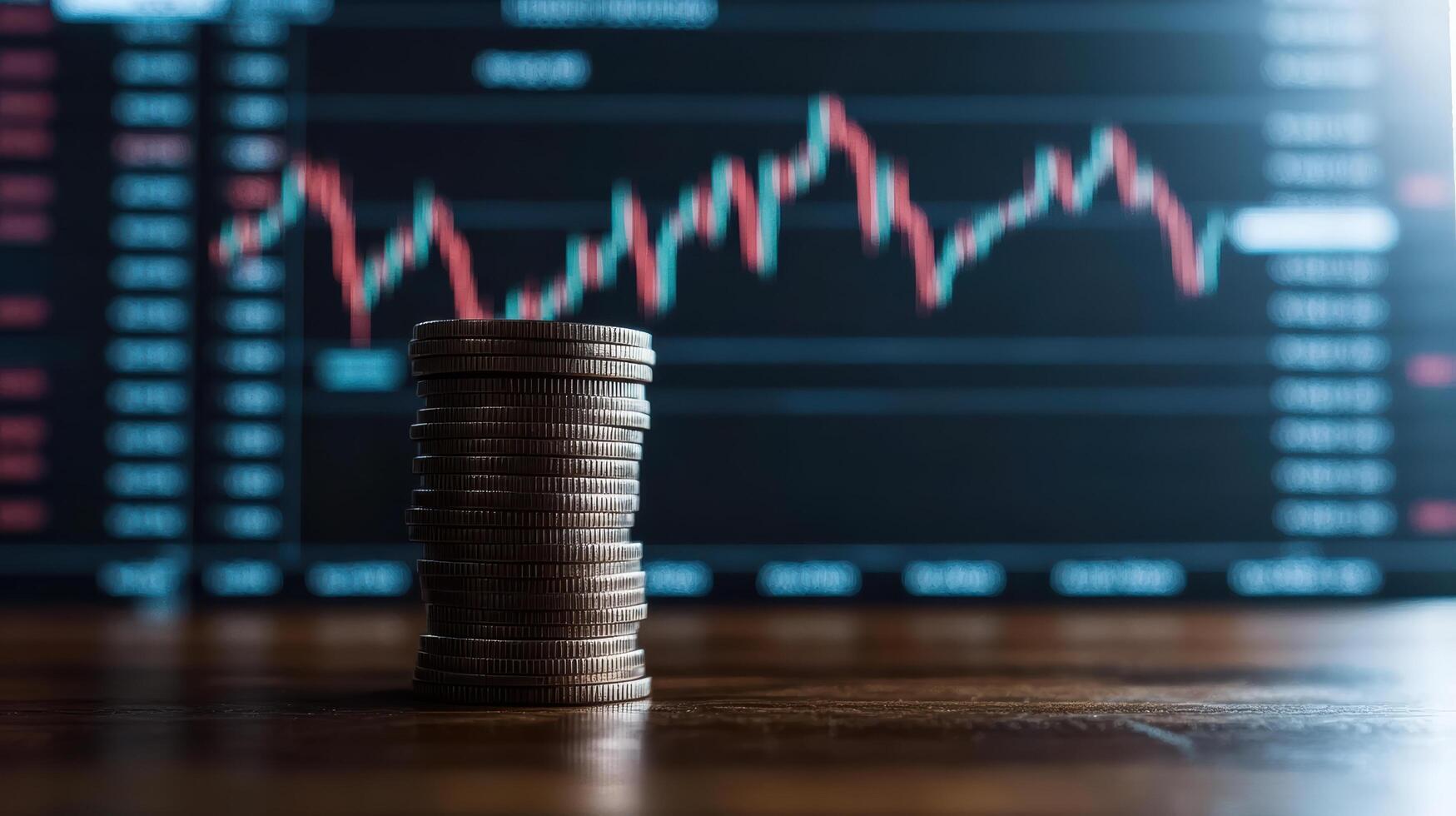 Stack of coins in front of financial chart, symbolizing investment and growth photo