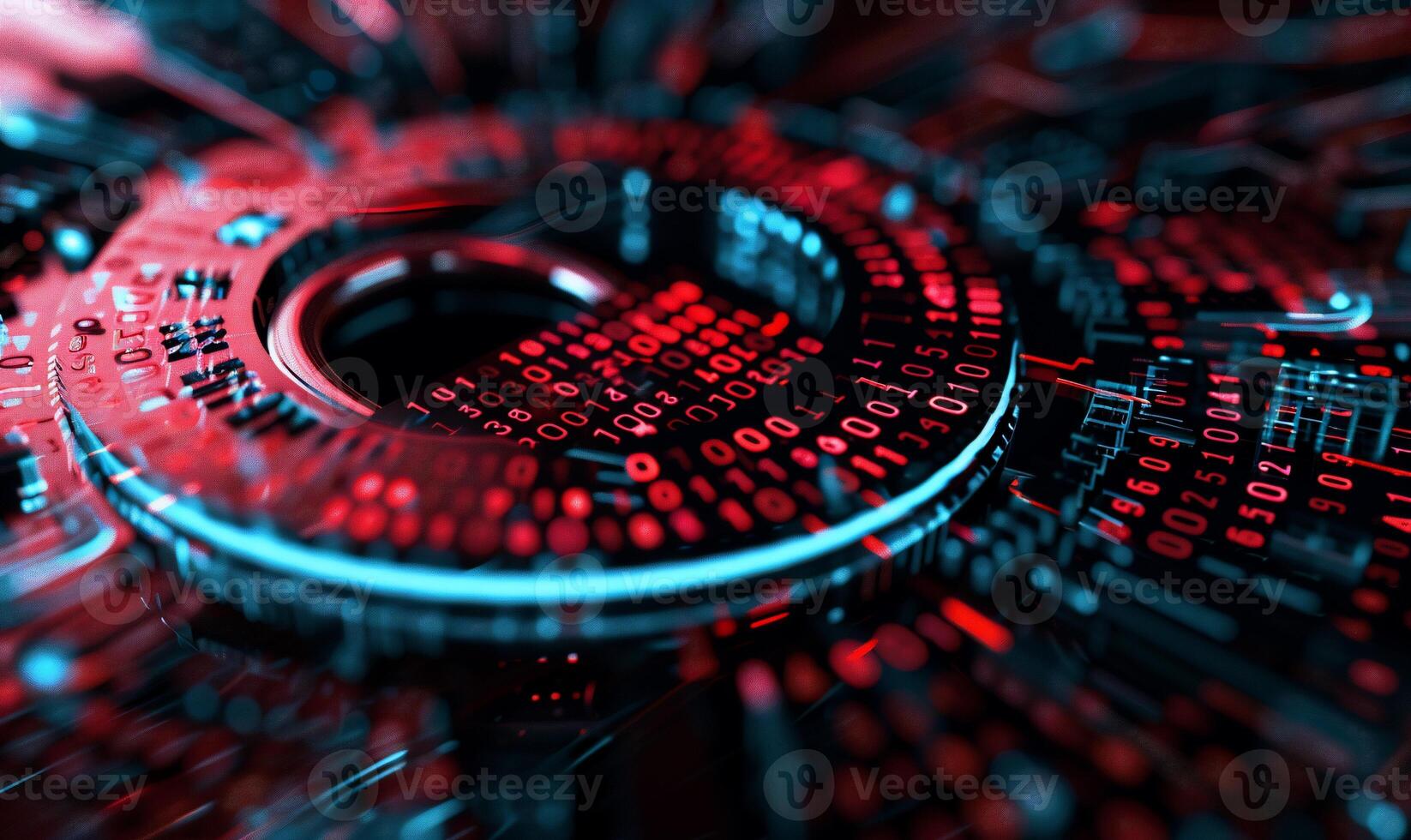Digital circuit board with binary code. Abstract technology design Pro Photo