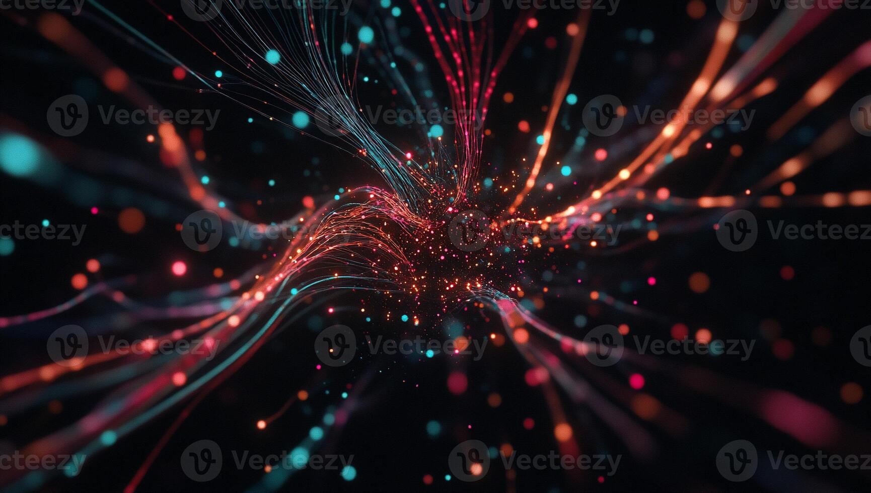 Abstract digital art depicting interconnected lines and particles. A dynamic, swirling effect of vibrant strands and tiny dots Pro Photo