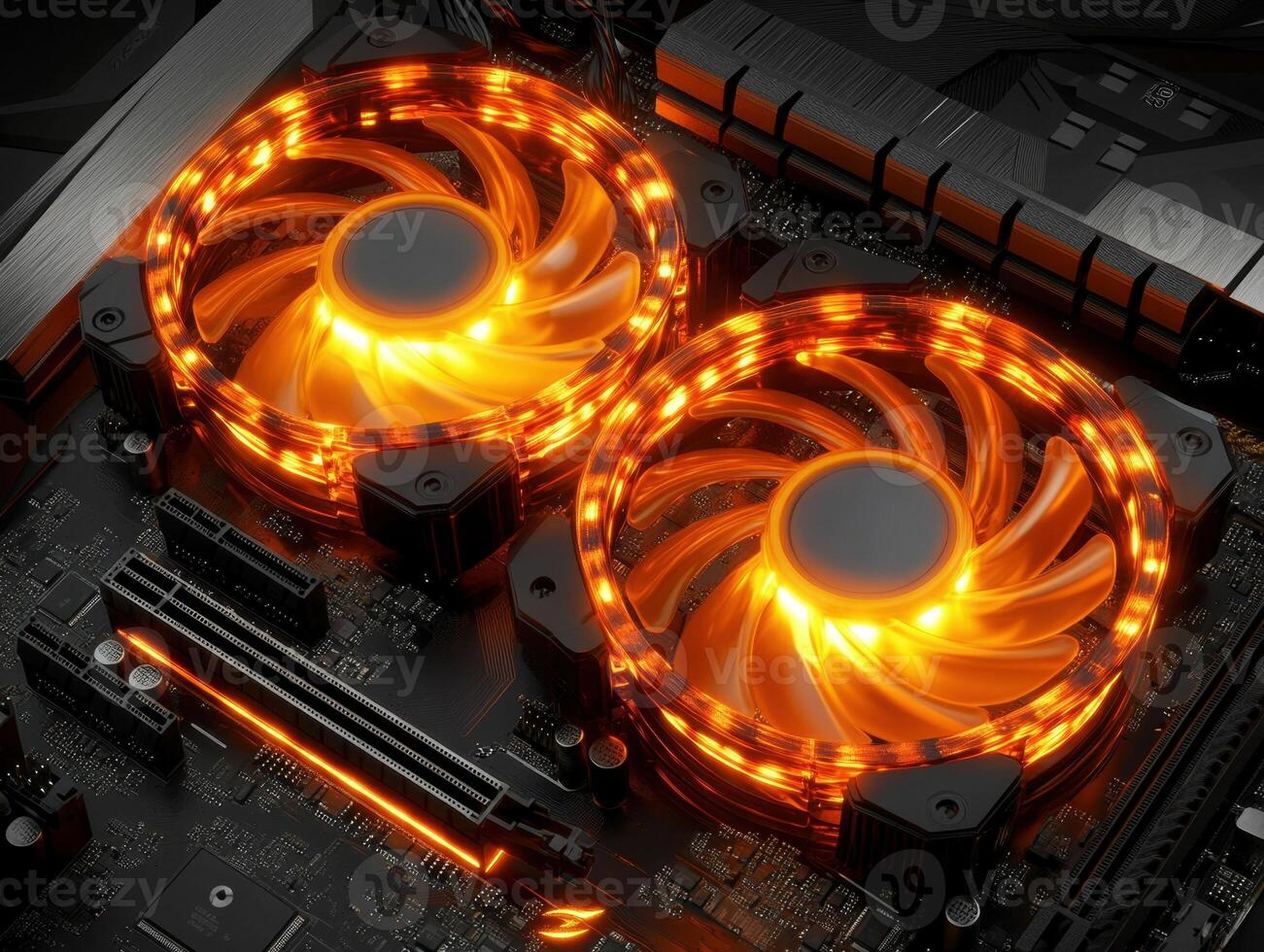 Computer cooling system with glowing fans and advanced hardware Pro Photo
