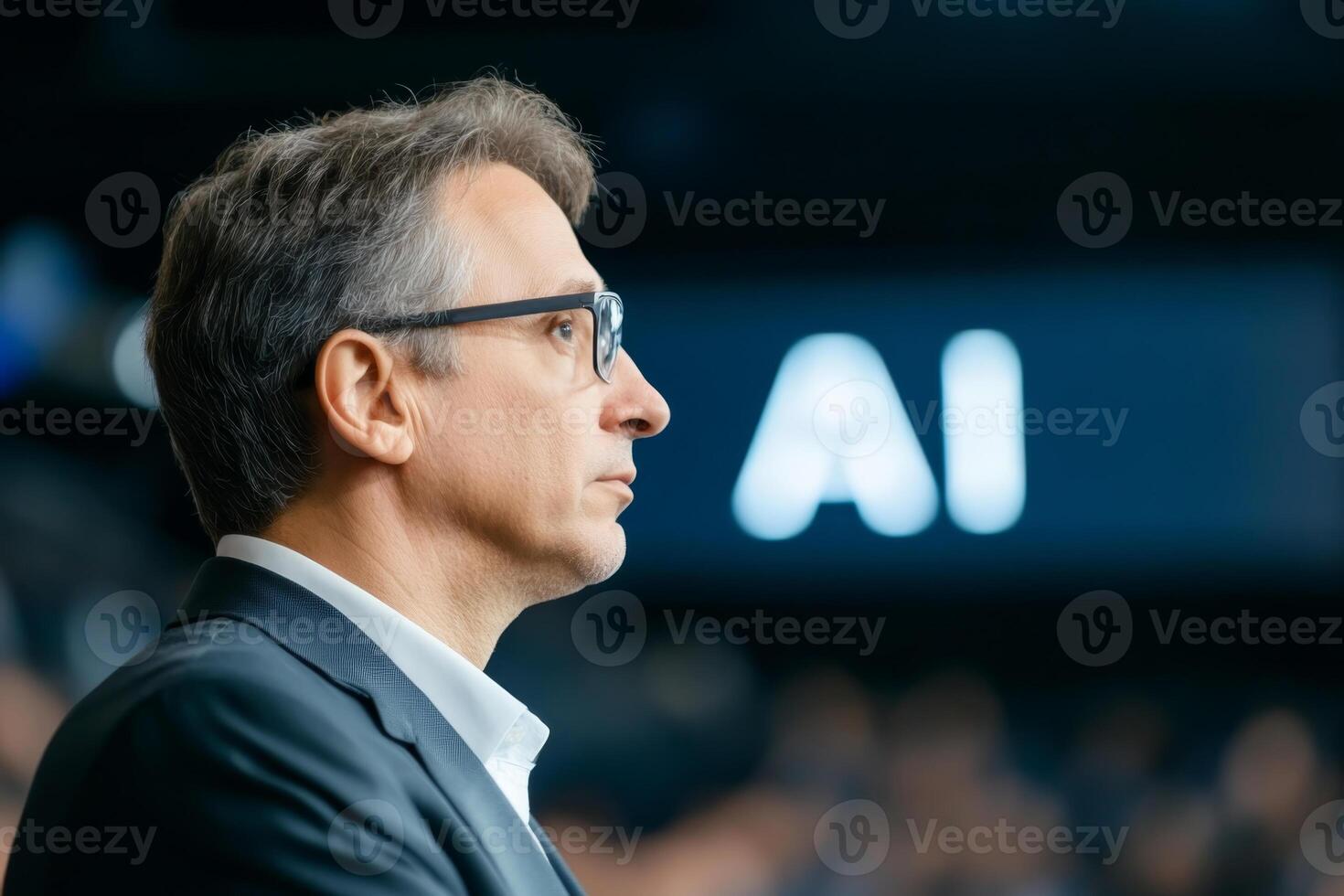 Professional speaker presents insights on artificial intelligence at a tech conference in an engaging atmosphere Pro Photo