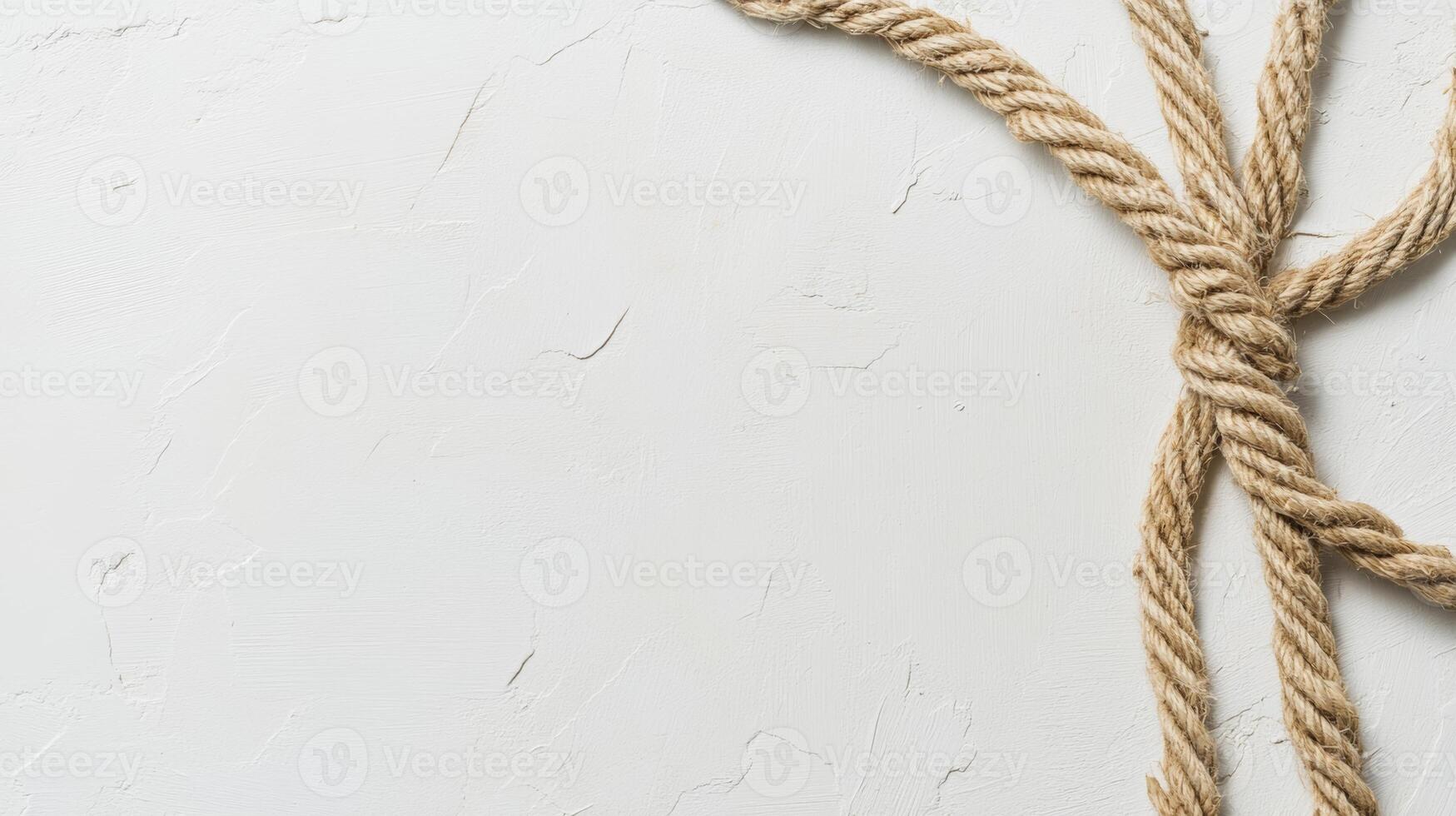 Twisted jute rope forming a loop on a textured white background creating a natural and rustic aesthetic Pro Photo