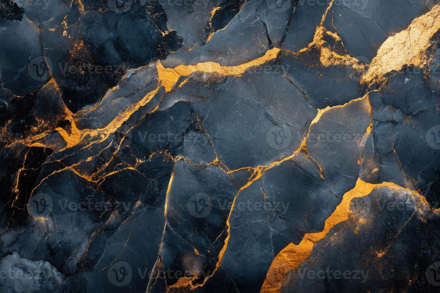 Dark stone surface texture. Gold veins run through cracked rock. A high resolution image. Beautiful abstract background. Natural stone effect with pattern. Pro Photo