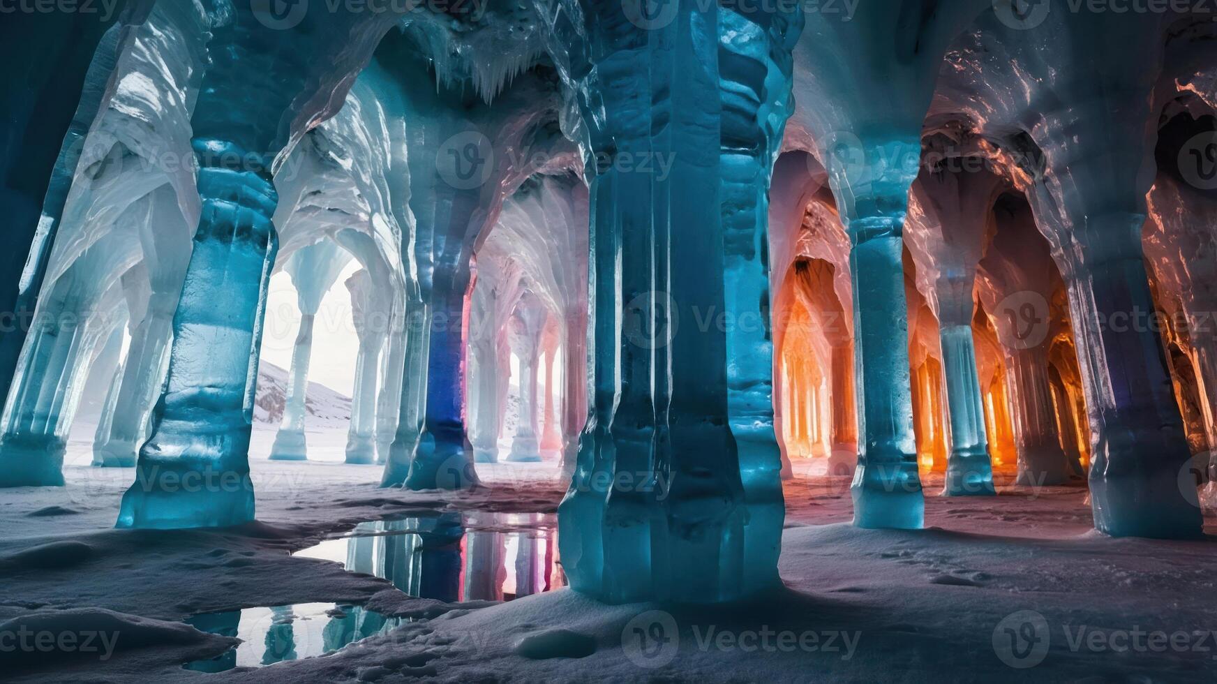 Exploring Inside an Ice Cave with Reflected Light and Columns Pro Photo