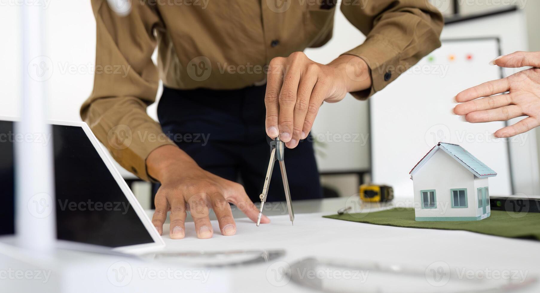 Innovative Design and Drafting Skills. Team using compasses to map out sustainable development projects in a collaborative workspace. Pro Photo
