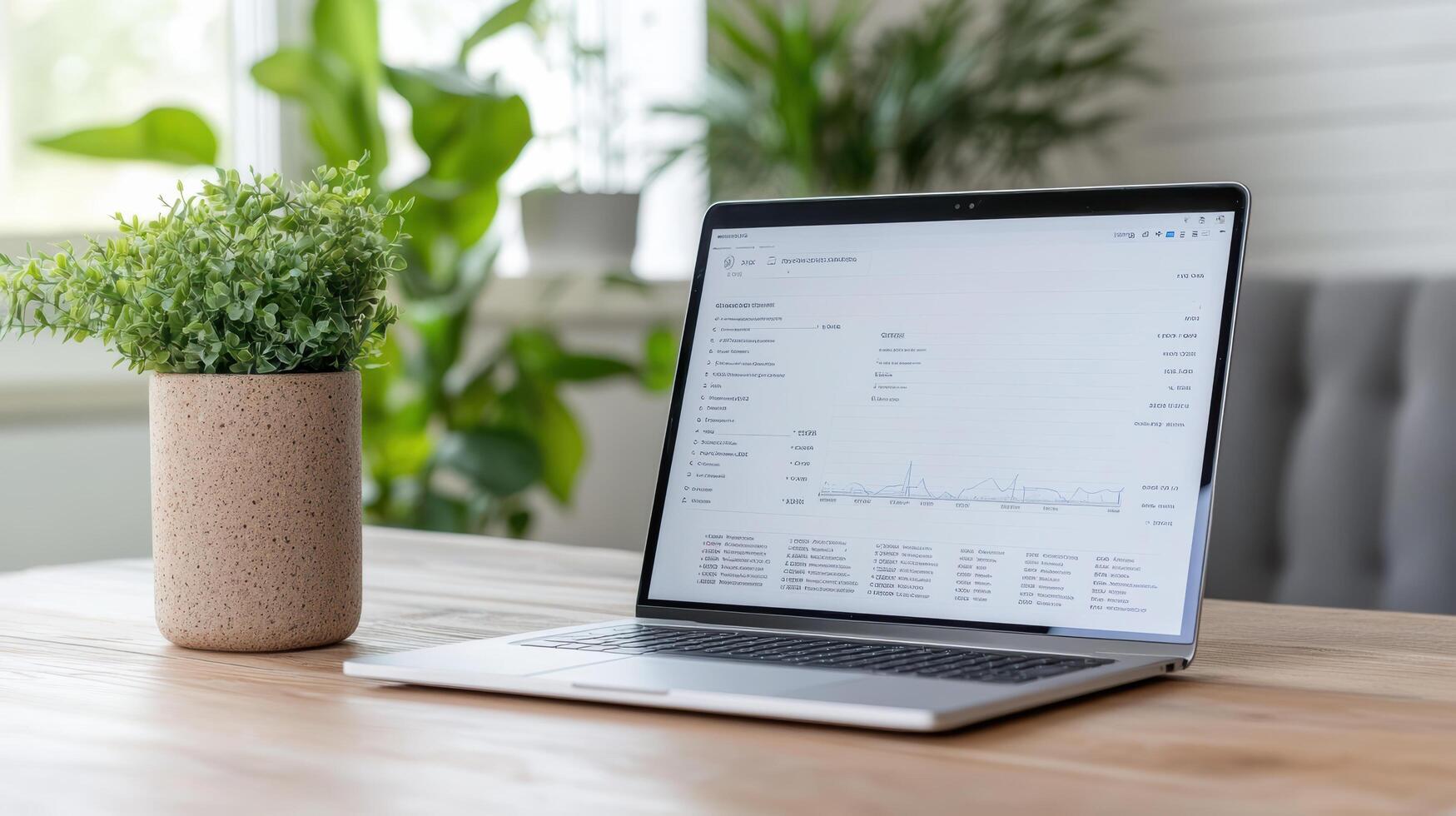 modern financial dashboard displayed laptop, showcasing data analytics and insights photo