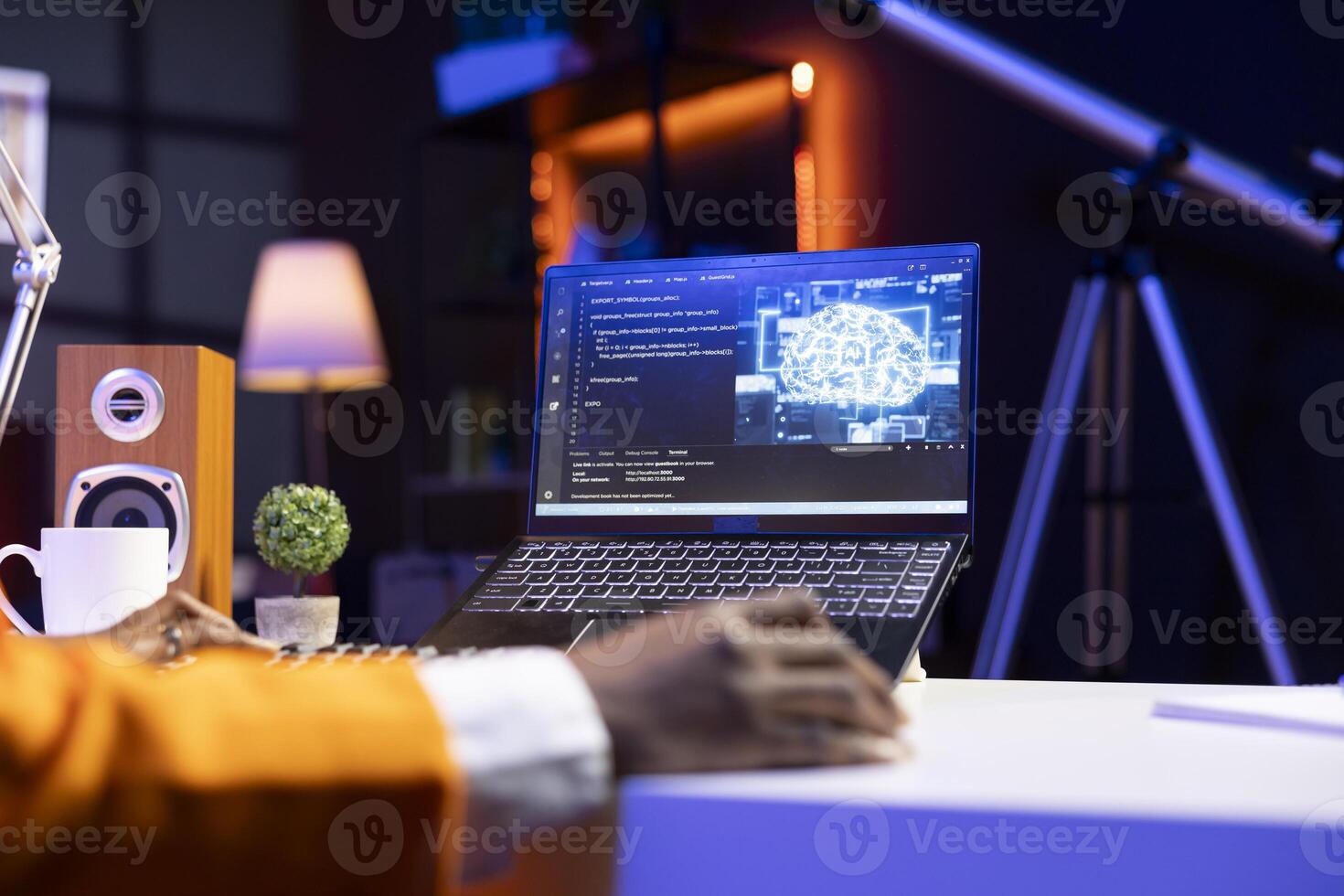 AI professional in home office using laptop to write programming language code. Close up of artificial intelligence engineer working from home using notebook device to build application Pro Photo