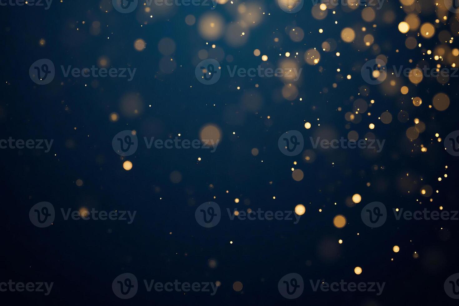 Golden bokeh lights floating in the air, creating a magical and festive atmosphere, dark blue background, soft and dreamy effect, elegant and sophisticated design Pro Photo