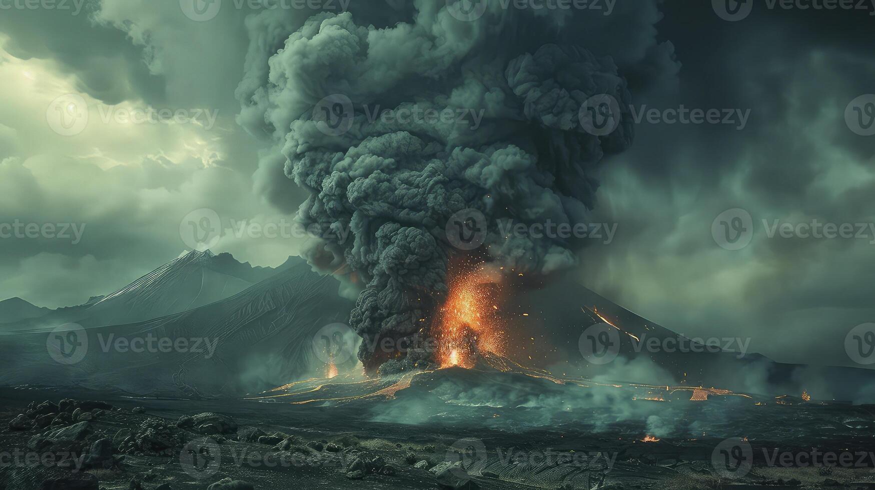 Massive Volcano Exploding with Fiery Lava and Dark Smoke in a Cataclysmic Eruption Pro Photo