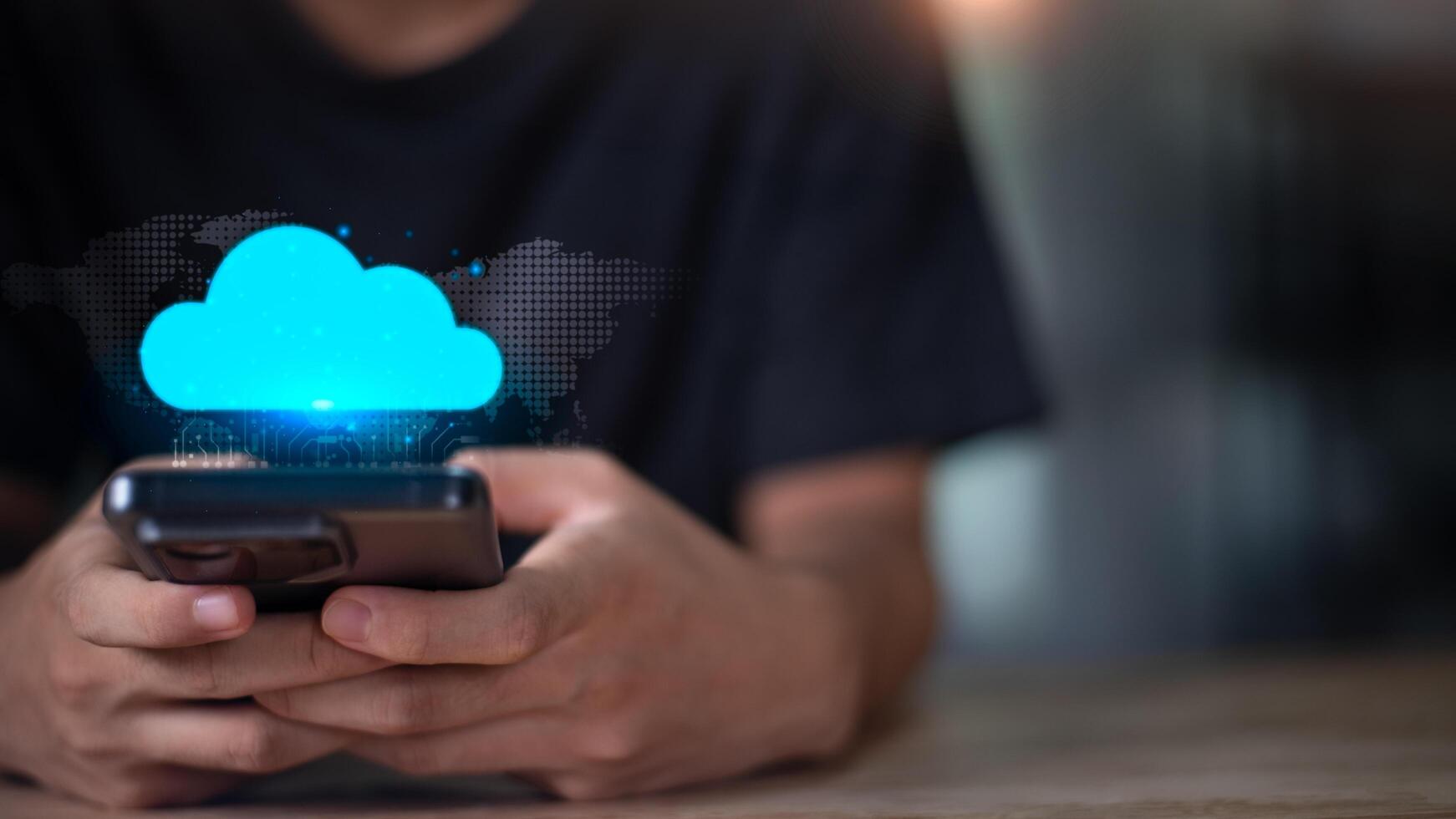 cloud computing backup technology concept , database connection with modern hardware and software , Access to server communication services , interface for uploading and downloading data Free Photo