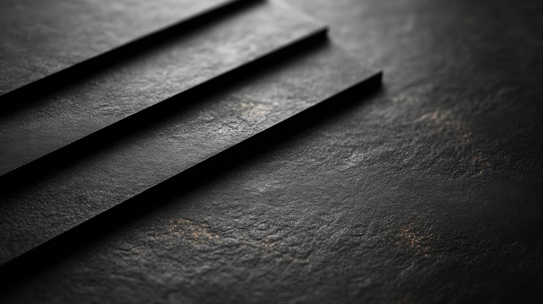 Textured black surface with layered elements creates a dramatic visual effect in a minimalist design photo