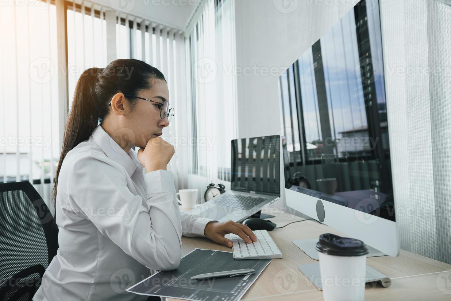 Asian female software developers are stressed in analyzing code-based systems. Pro Photo
