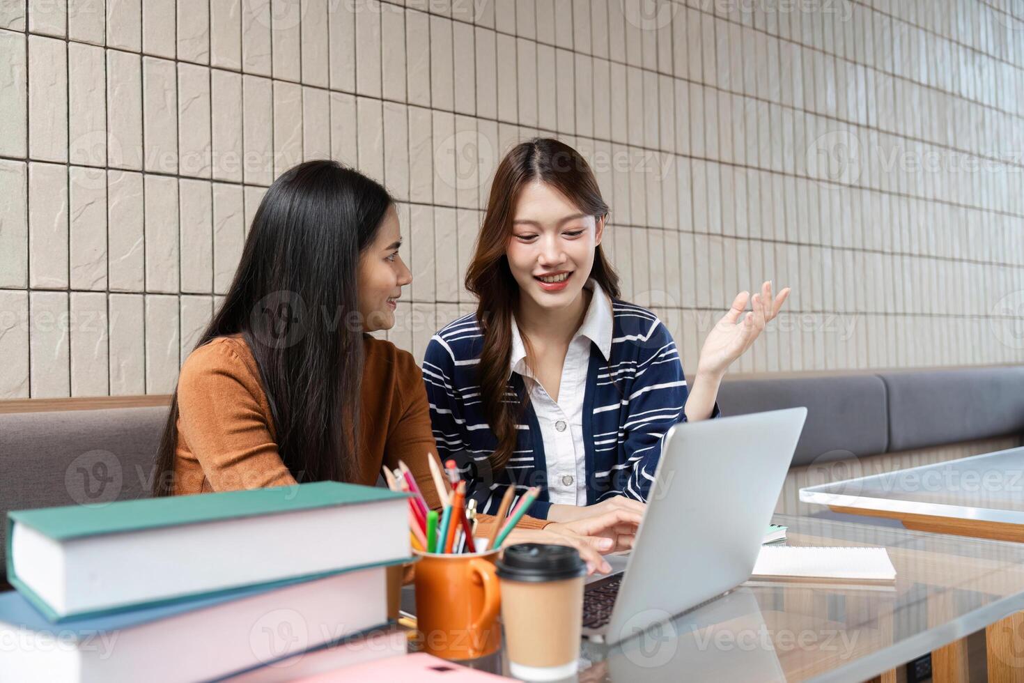 Study Session and Collaboration. Two students collaborating on an assignment while engaging in lively discussion. Pro Photo