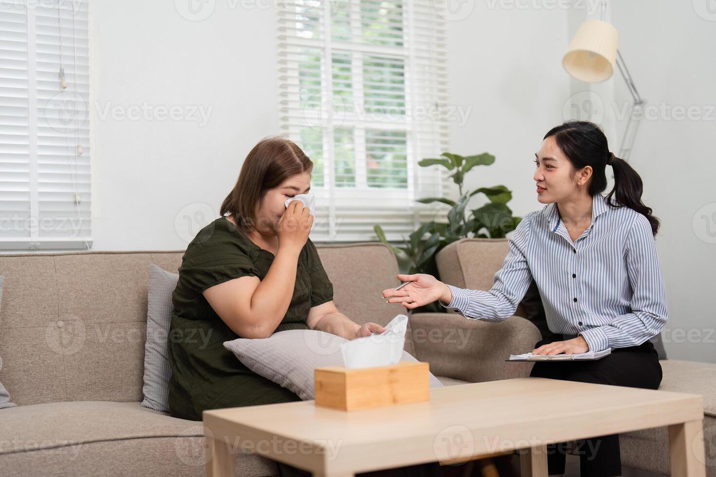 Understanding and Empathy. A psychiatrist has an open conversation with a patient confronting difficult emotions, providing understanding and empathy. Pro Photo