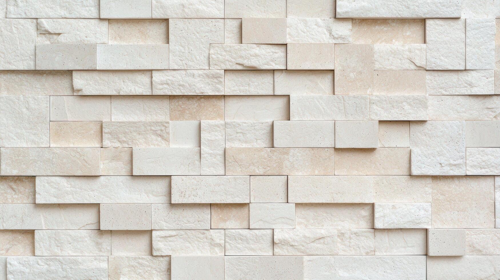 Cream Beige Stacked Stone Wall Texture with rectangular bricks in a layered pattern ideal for backgrounds, architecture, or interior design. Free Photo
