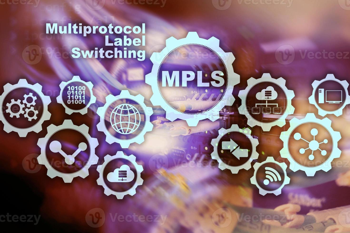 MPLS. Multiprotocol Label Switching. Routing Telecommunications Networks Concept on virtual screen Pro Photo