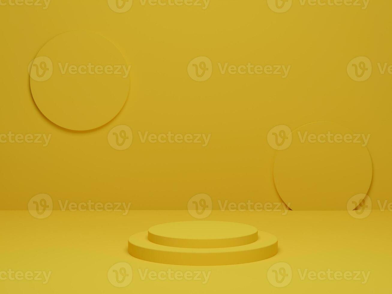 3D rendering. Yellow cylinder podium minimal studio background. Abstract geometric shape platform with empty space. Pro Photo
