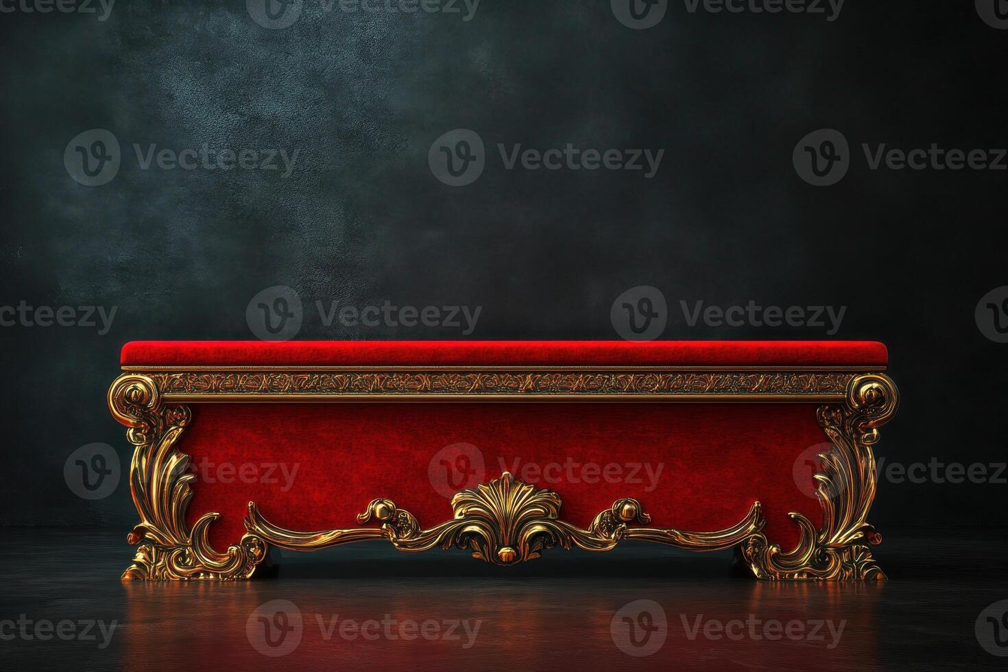 Elegant Long Red Table Podium 3D Background for Product Display and Presentation Pro Photo