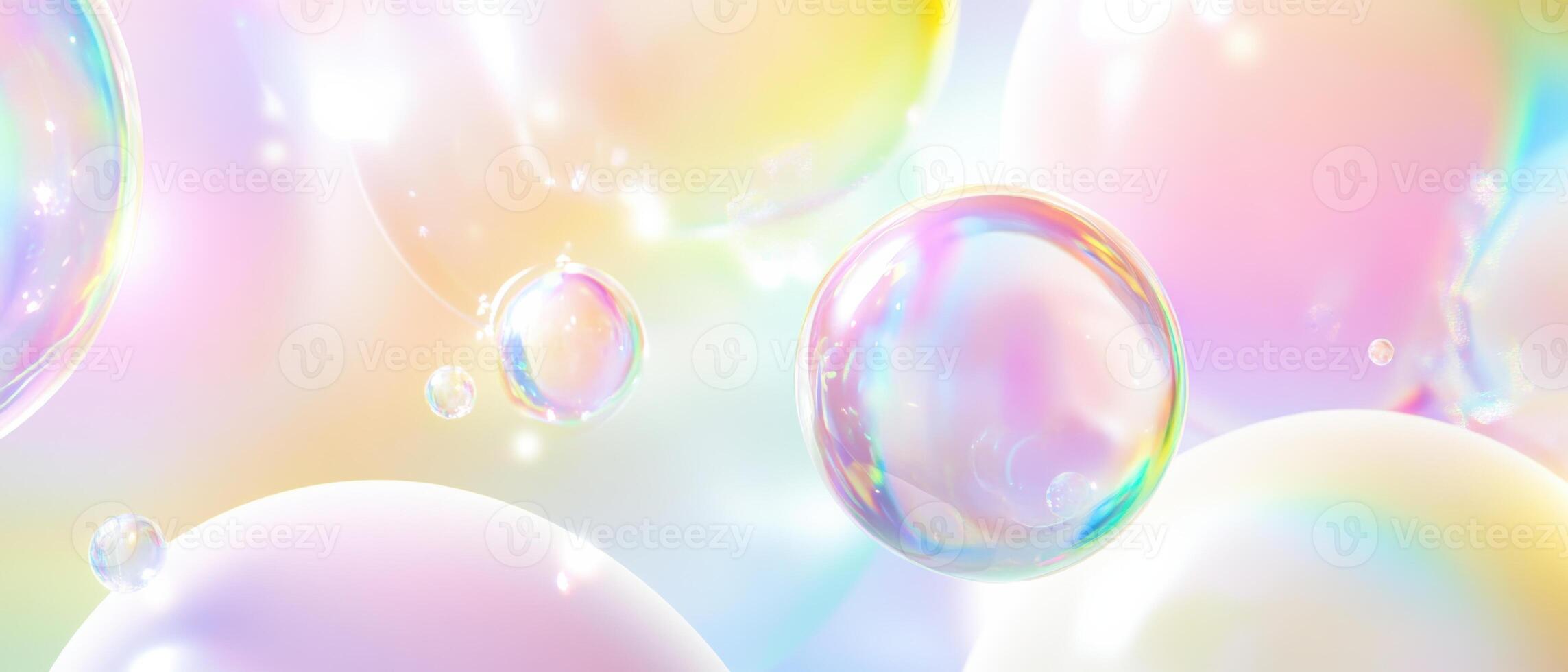 Iridescent Soap Bubbles Floating on Pastel Background, Abstract Dreamy Texture with Rainbow Colors and Light Refraction Pro Photo