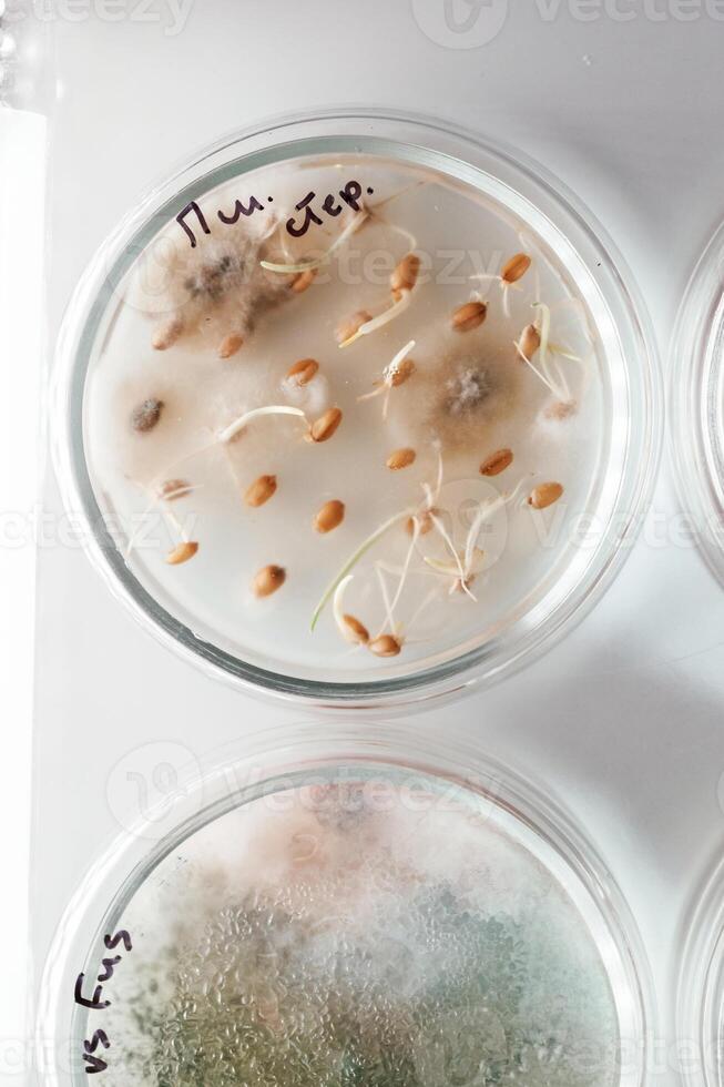 Detailed top ,,view. Trichoderma and Sclerotinia in the laboratory in the special rounded containers Pro Photo