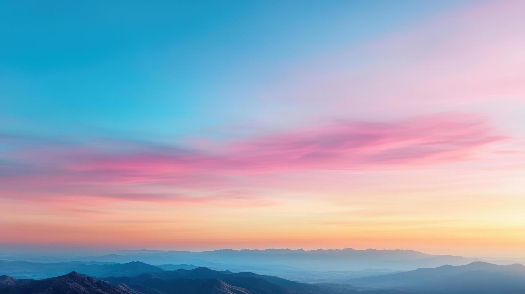 Pastel twilight sky above mountain ridge with soft clouds creating serene atmosphere photo