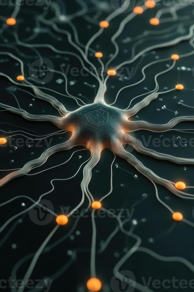 Abstract neural network with glowing nodes connected by lines. Artificial intelligence deep learning system on dark background. Technology brain structure. Pro Photo