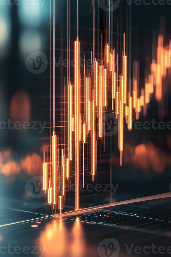 Glowing Data Chart Ascending on Dark Surface, Neural Networks Display, Orange Information Columns, Artificial Intelligence Concept Pro Photo
