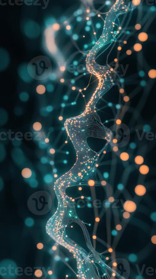 Glowing lines connecting points depicting a neural network concept flowing with lights against a dark background showing a complex pattern Pro Photo