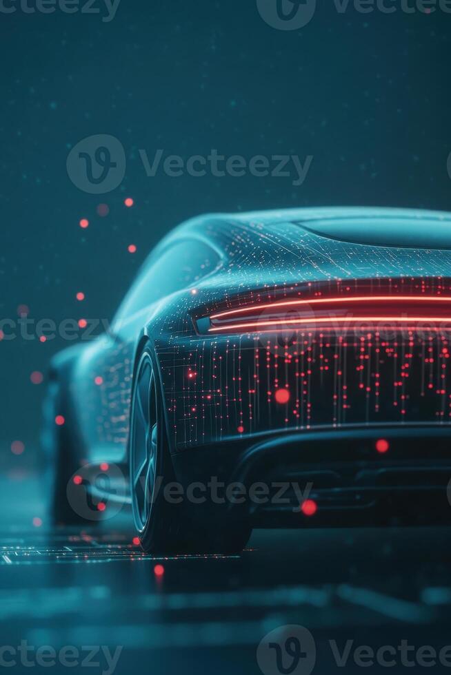 Dark Vehicle Rear Lit With Neural Networks Data Stream Overlay on Grungy Surface in Dimly Lit Environment Pro Photo