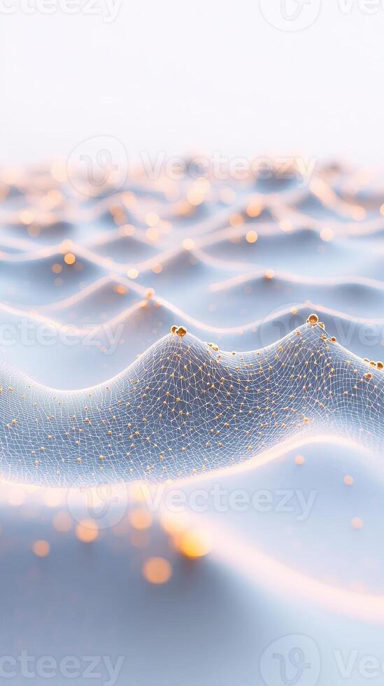 Abstract image shows wave pattern connected with mesh and tiny dots in the structure for neural networks. Pro Photo