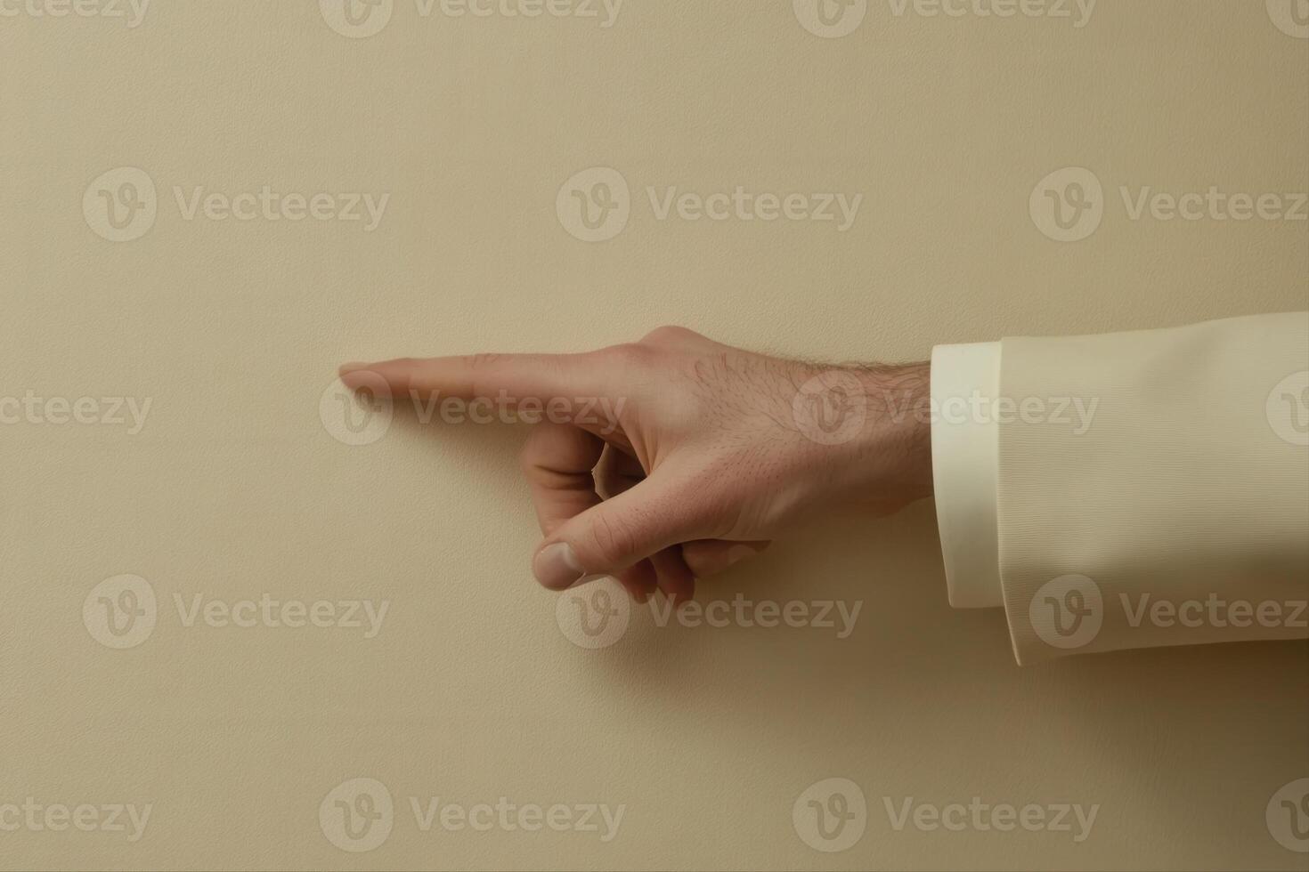 Hand pointing towards a blank wall, suggesting communication or direction in a minimalist setting Pro Photo