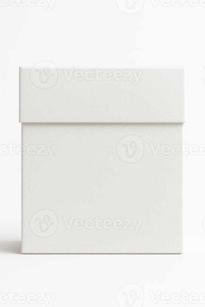 White Two Piece Square Box with Lid in Front View on Textured Surface in Ultra High Resolution with Studio Lighting Isolated on Clean White Background Pro Photo
