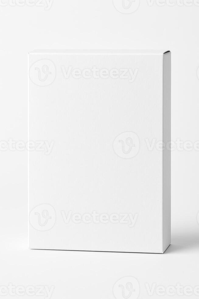White Rectangular Cardboard Box for Cookies with Matte Finish in Professional Studio Lighting Isolated on Clean White Background in Ultra High Resolution Photorealistic Front View Pro Photo