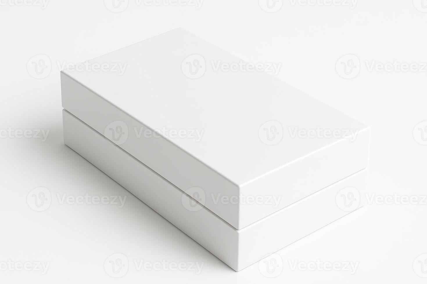 White Rectangular Cardboard Box for Smartphone with Lid on Isolated Background in Ultra High Resolution and Photorealistic Studio Lighting with Smooth Surface for Professional Design Use Pro Photo