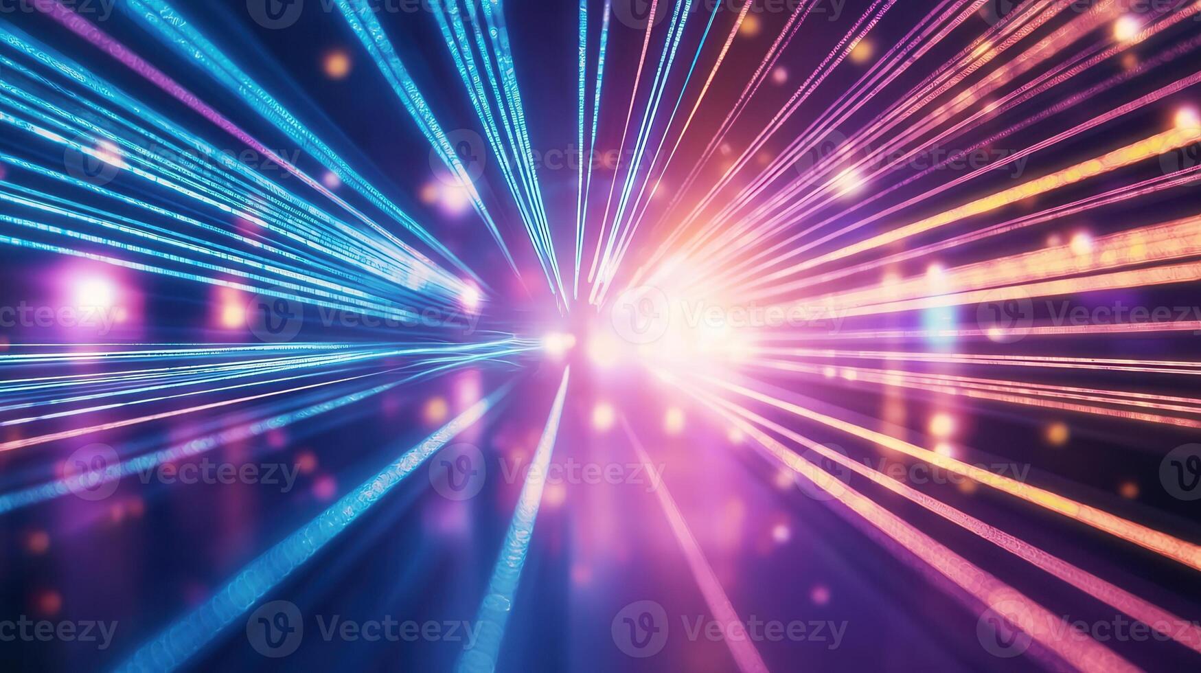 Pink and blue lines converge into a bright light source, creating a sense of speed and motion, enhanced by a bokeh effect Pro Photo