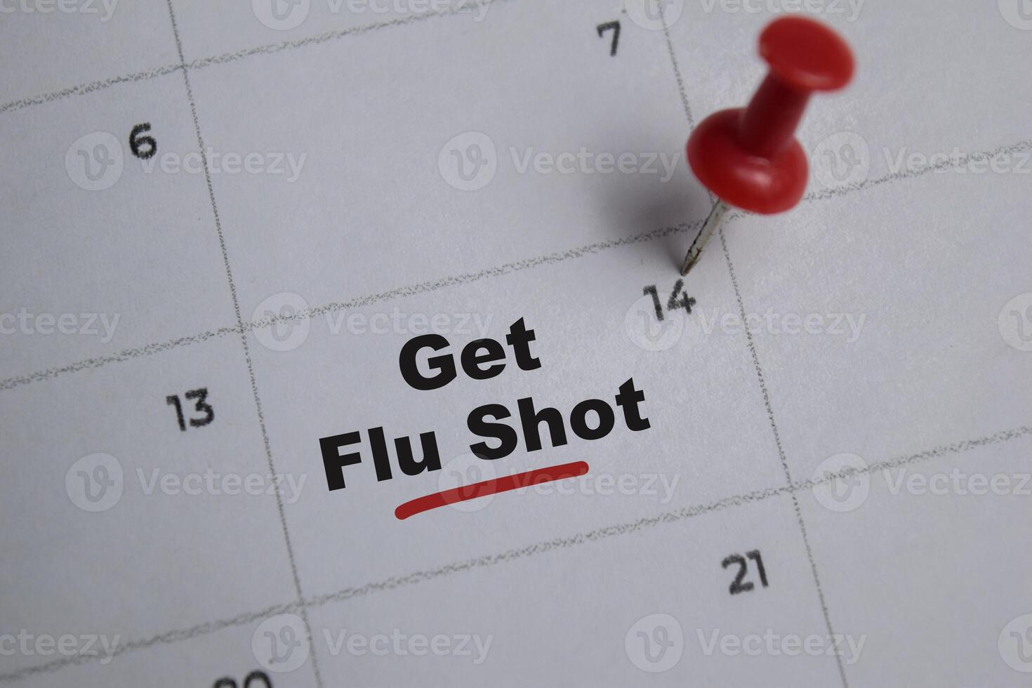 14th day of the month. writing text Get flu shot on calendar date. Save the date. Day of the year concept. Pro Photo