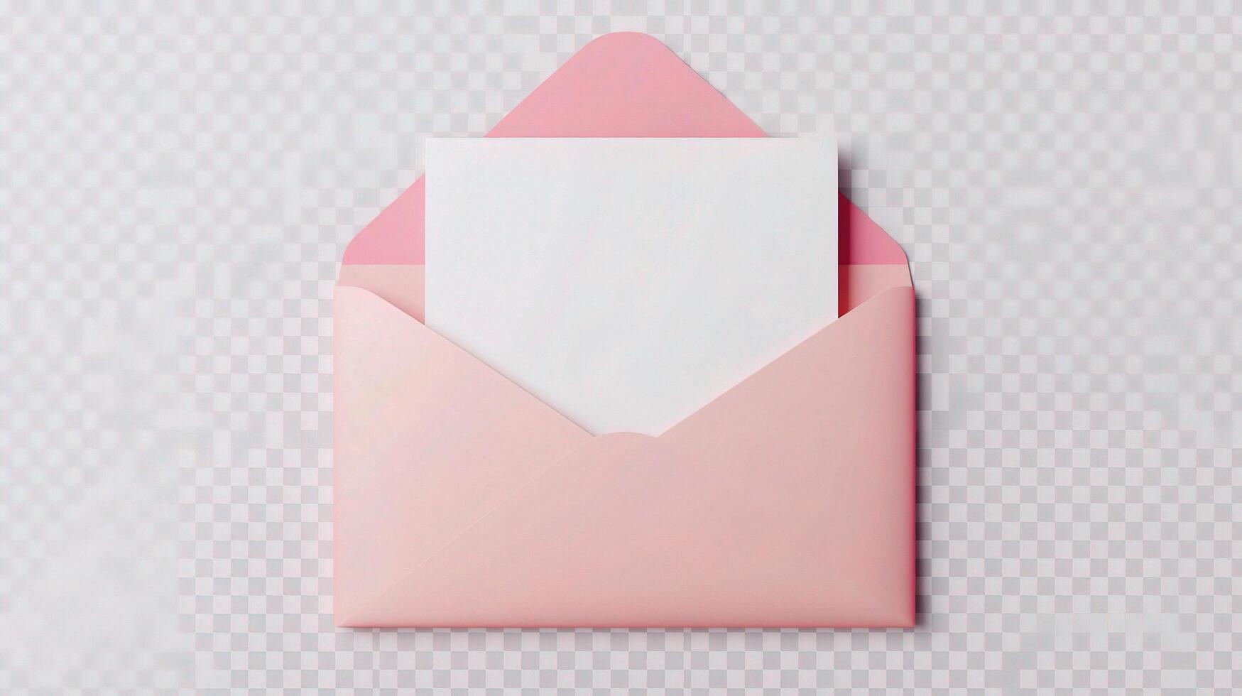 An open pink envelope with a blank sheet of paper inside photo