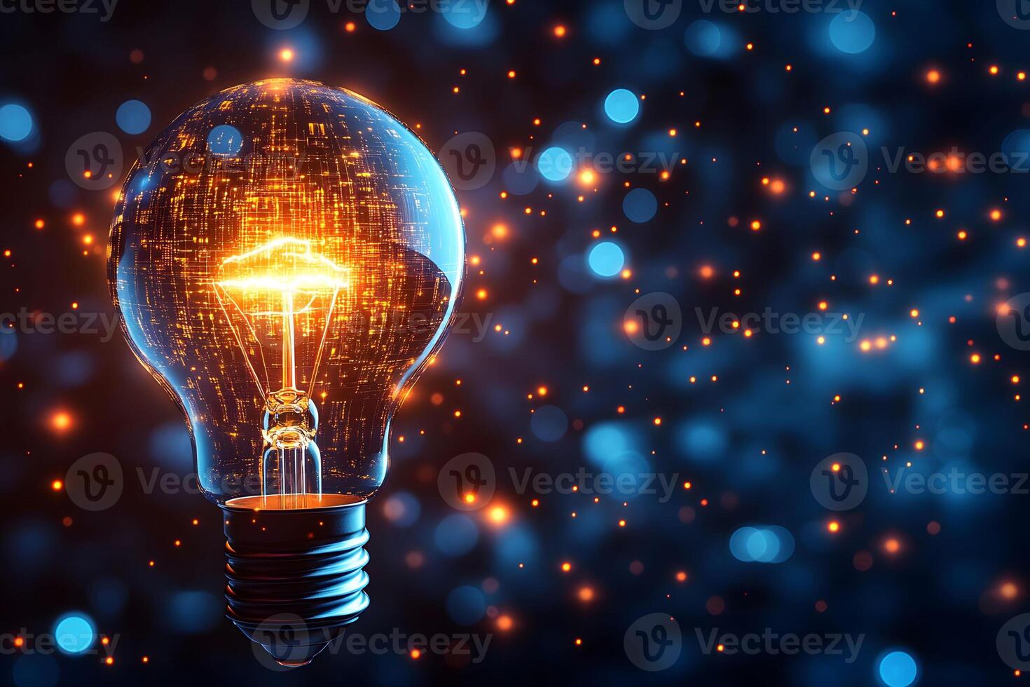 Illuminated Lightbulb with Digital Patterns on a Vibrant Bokeh Background for Technology Concept Design Pro Photo