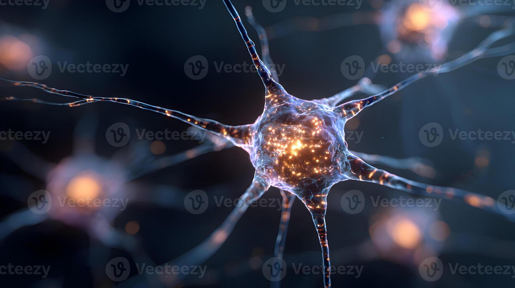 Abstract neuron cell network with glowing particles, signaling and connecting within the brain Pro Photo