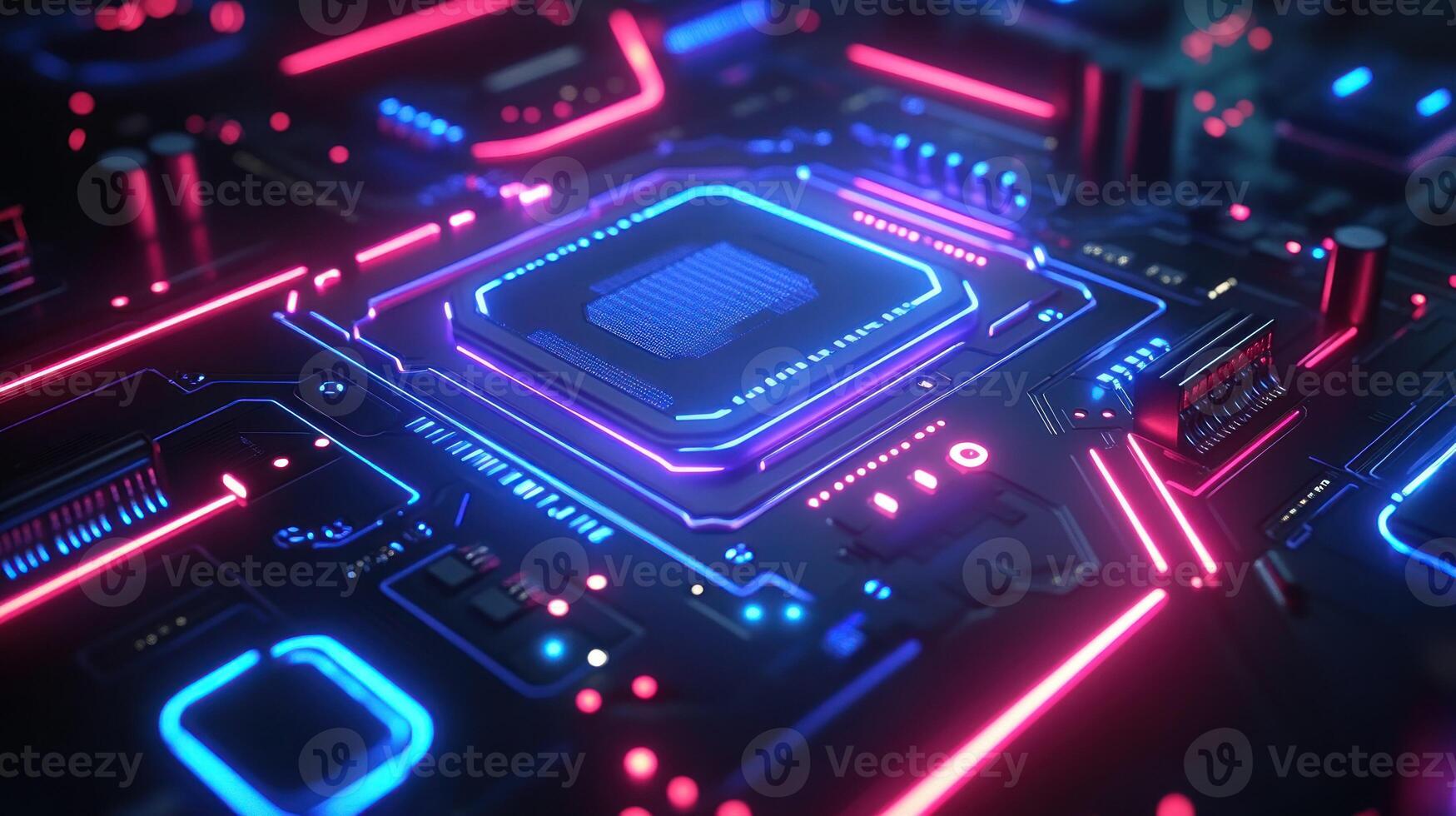 Close-up of glowing circuit board with processor Pro Photo