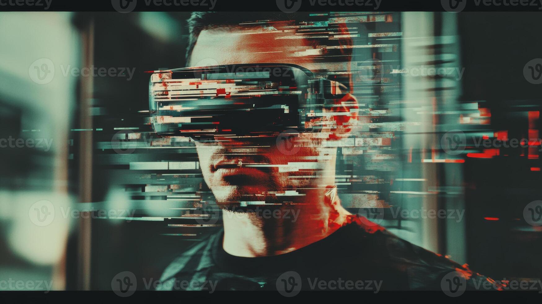 Virtual reality experience in a futuristic setting showcasing immersive technology and human interaction with digital elements Pro Photo