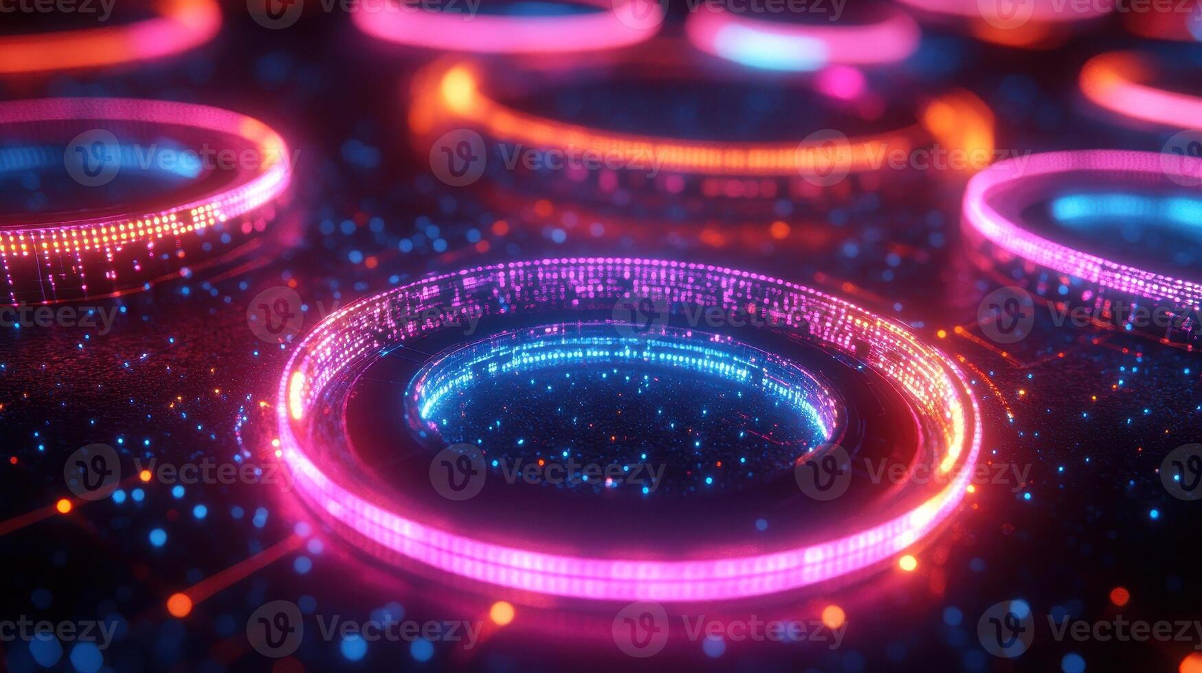 Futuristic glowing rings, data streams, abstract background, tech concept Pro Photo