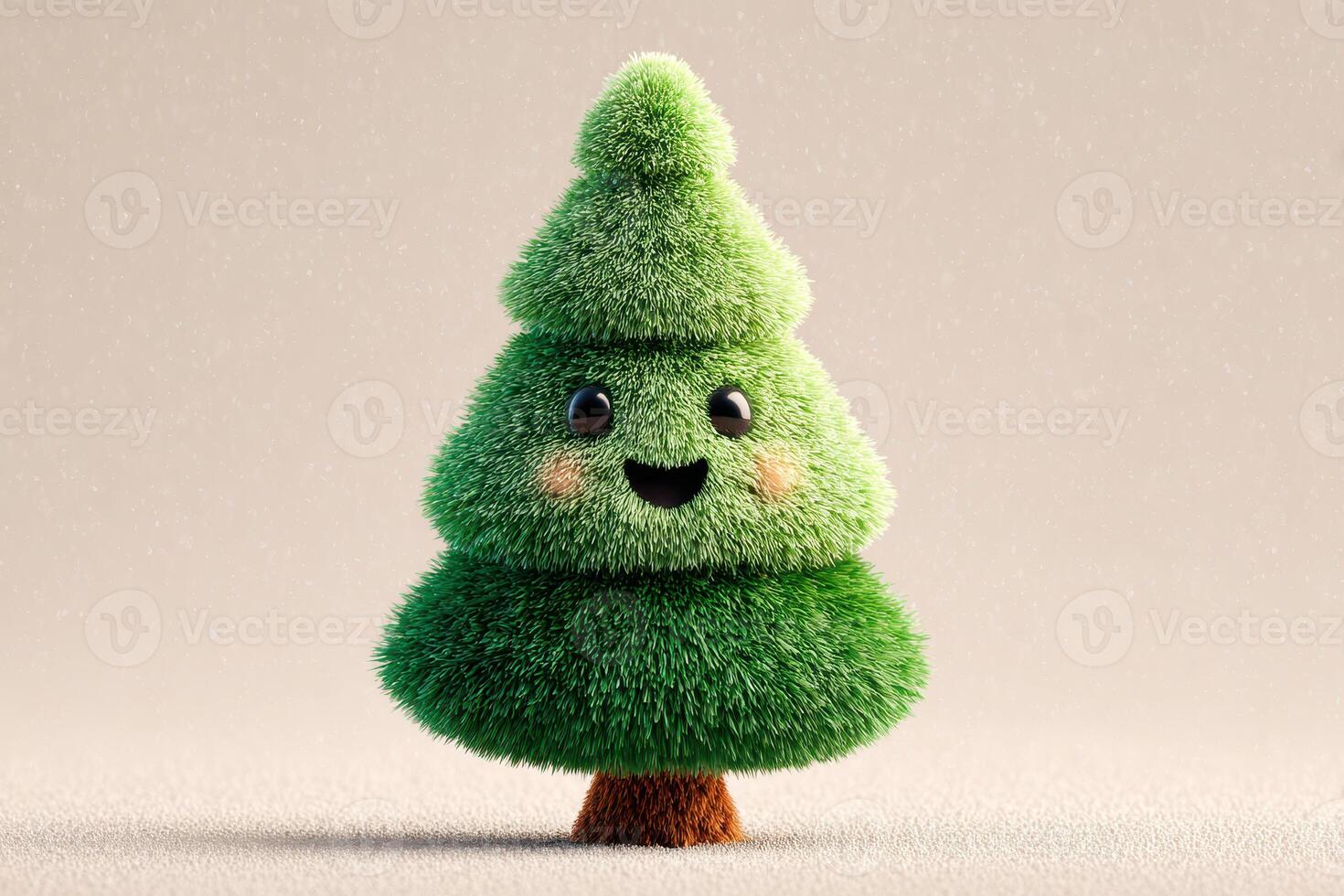 Cute cartoon tree character with smiling face and fluffy texture in a light background setting Pro Photo