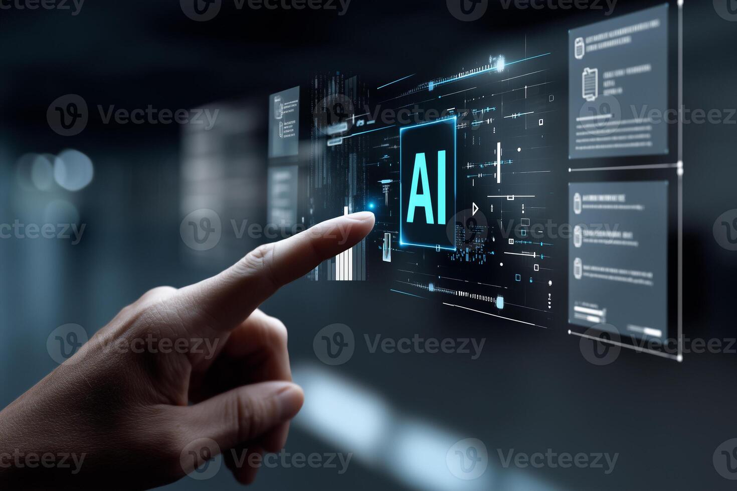 Interaction with artificial intelligence interface showcasing futuristic digital data presentation Pro Photo
