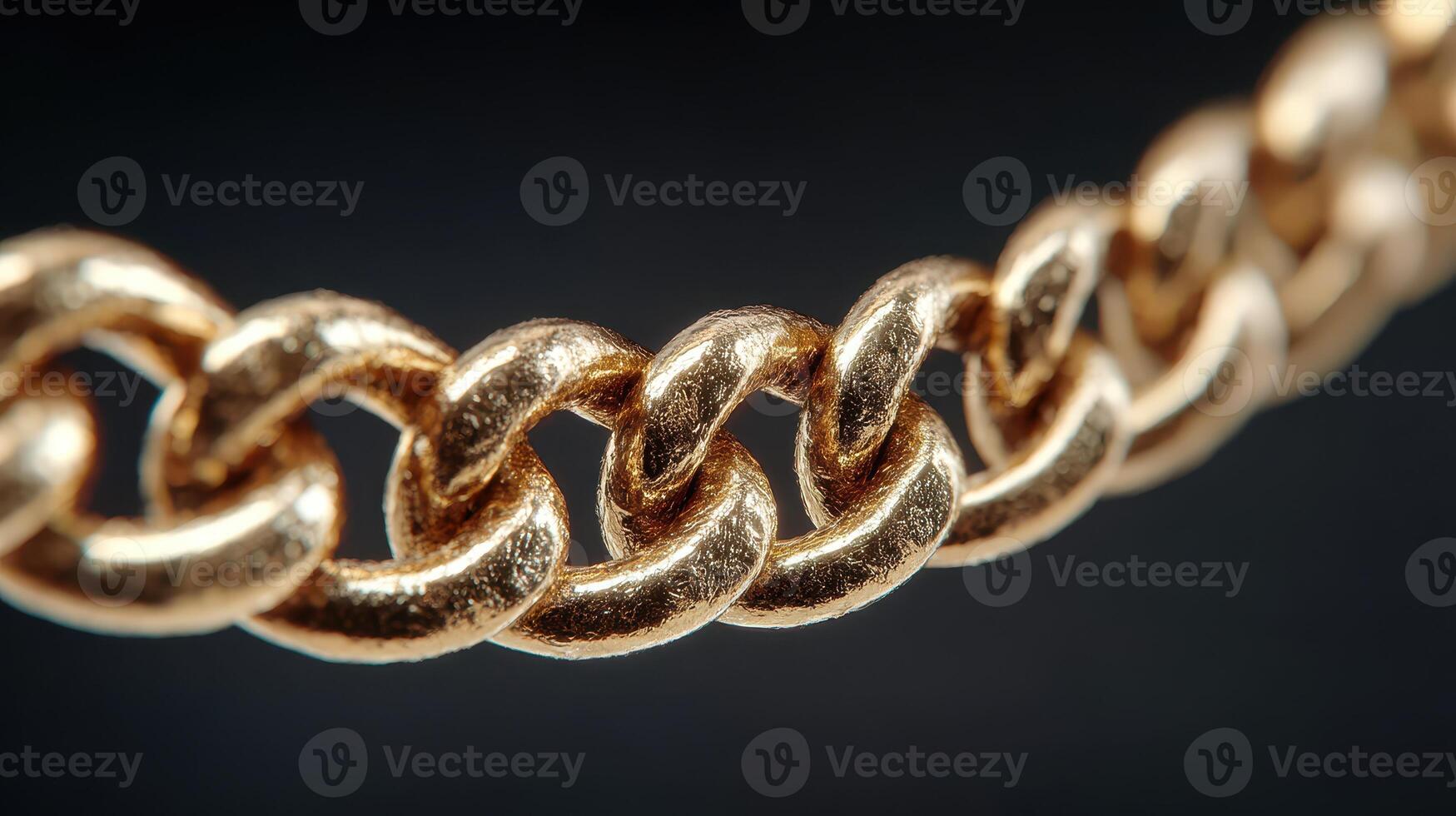Gold chain close-up showcasing intricate links and shining texture under bright light in a dark background setting Pro Photo