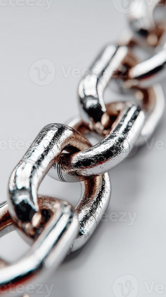 Close-up view of shiny metal chain links reflecting light in a studio setting during the afternoon Pro Photo