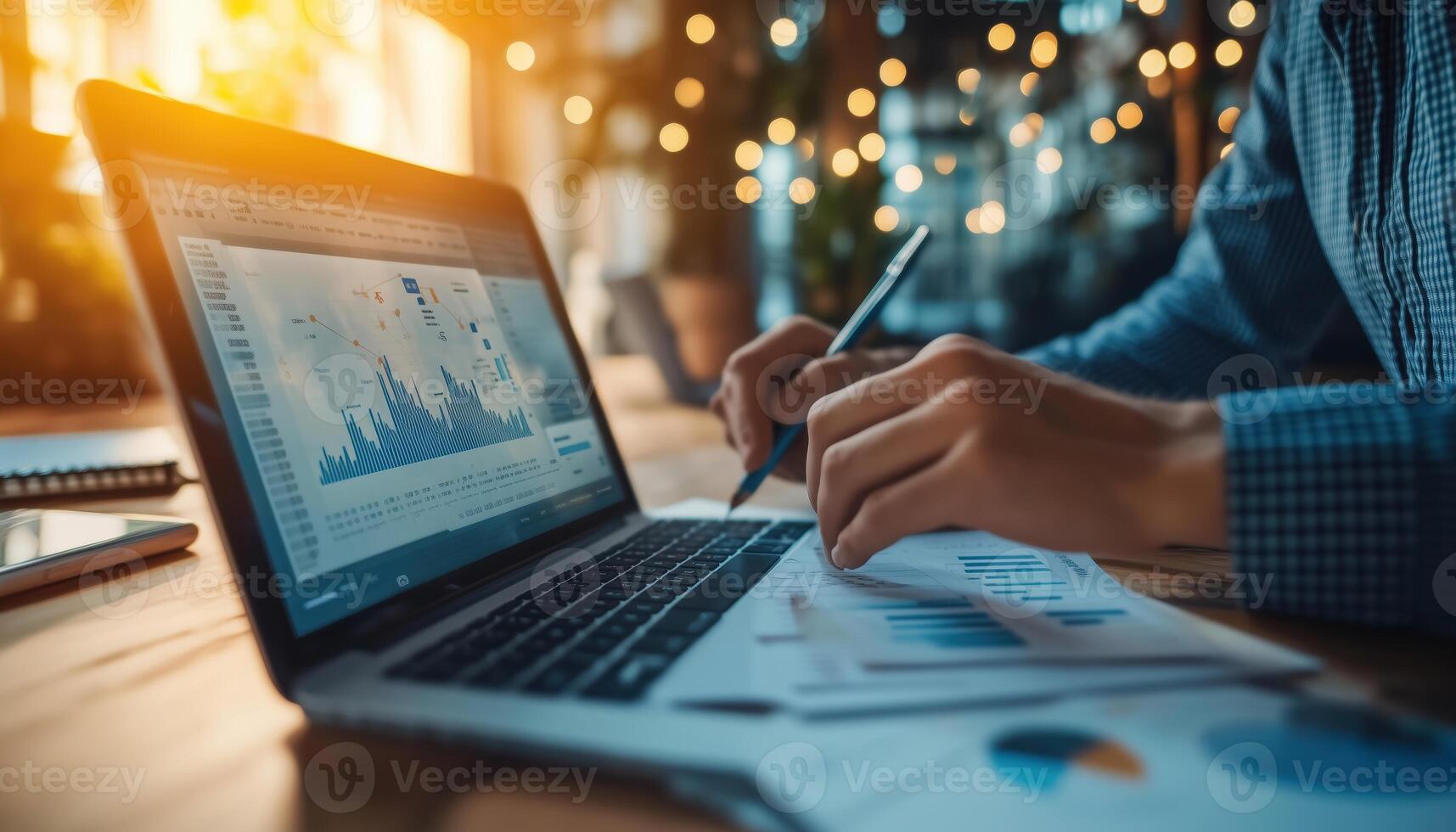 Managing Projects With Gantt Chart Schedule And Annual Schedule Update, Utilizing Planning Software On Laptop Screen For Management Diagram Pro Photo
