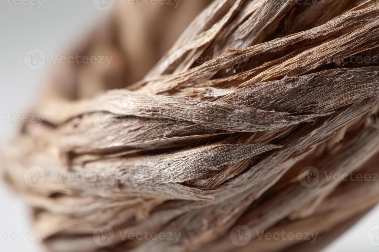 Tightly coiled natural fibers with a textured surface form an abstract structure in soft focus. The intertwined strands create an intricate pattern showcasing organic aesthetics Pro Photo