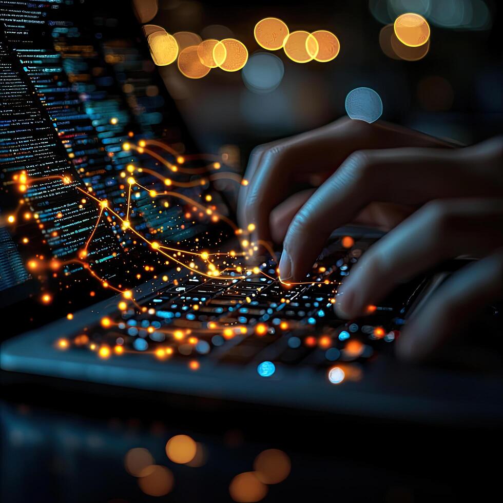 Coding on Laptop with Data Stream Cybersecurity, Software Development, and Network Connection Visualized Concept photo