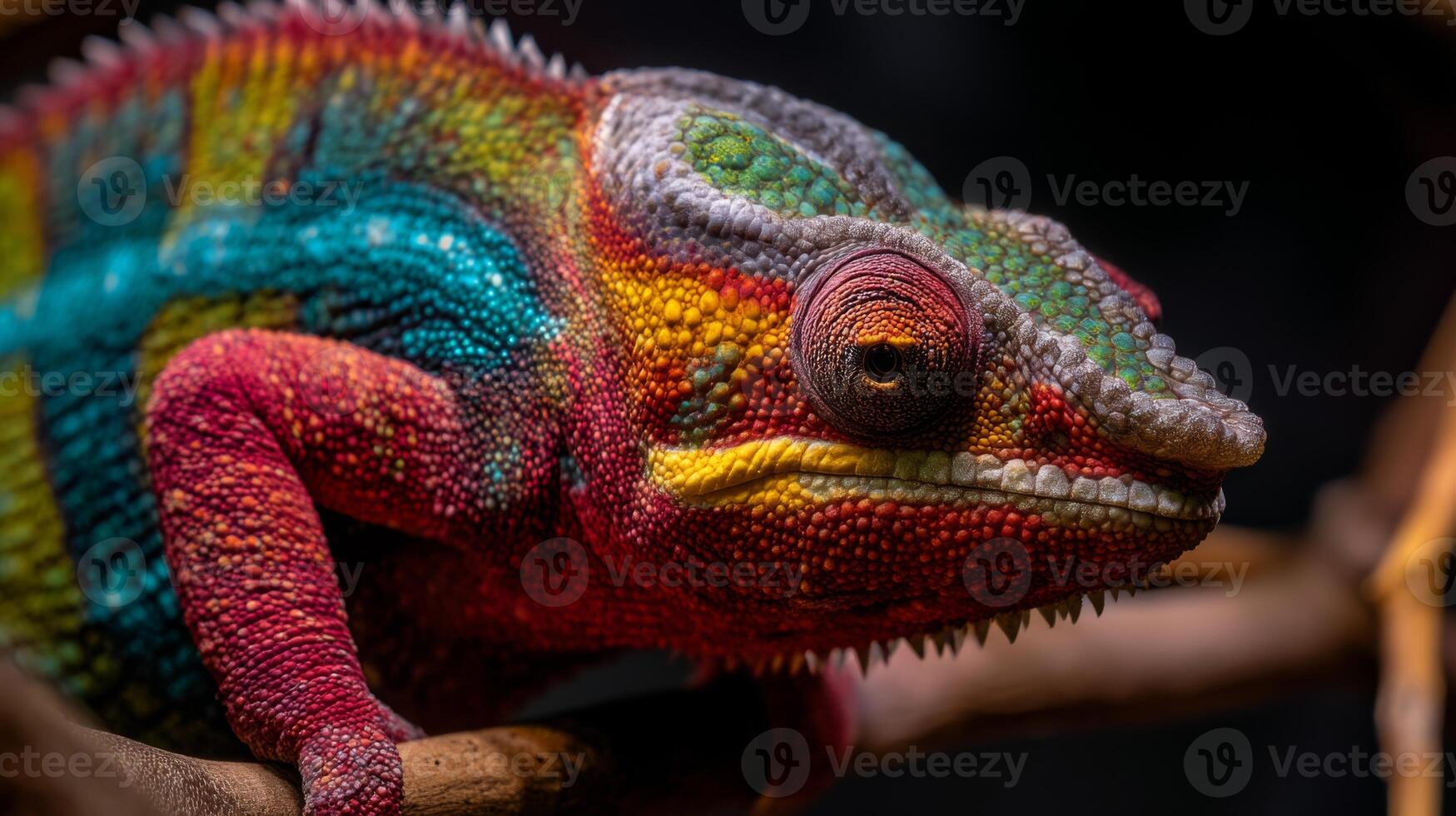 Vivid Chameleon Close-Up in Natural Habitat with Colors and Texture Highlighting Unique Features and Amazing Patterns Pro Photo